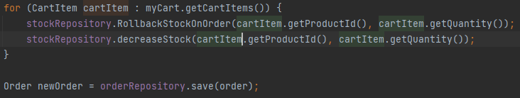 프로젝트를 진행하며 처음에 고생했던 부분은 주문이 성공하고 나서야 재고를 감소시켰었다는 점 입니다.