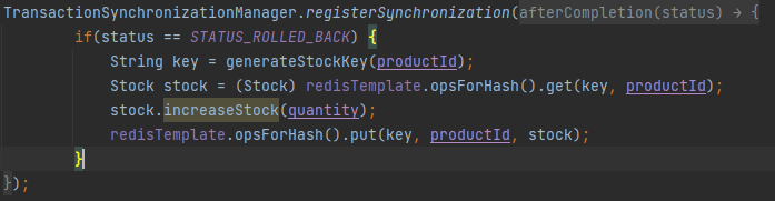 제 경우처럼 재고를 Redis로 관리한다면, RDB의 트랜잭션과 별개로 작동하기 떄문에 주문과 별개로 재고를 감소시킬 수 있습니다.